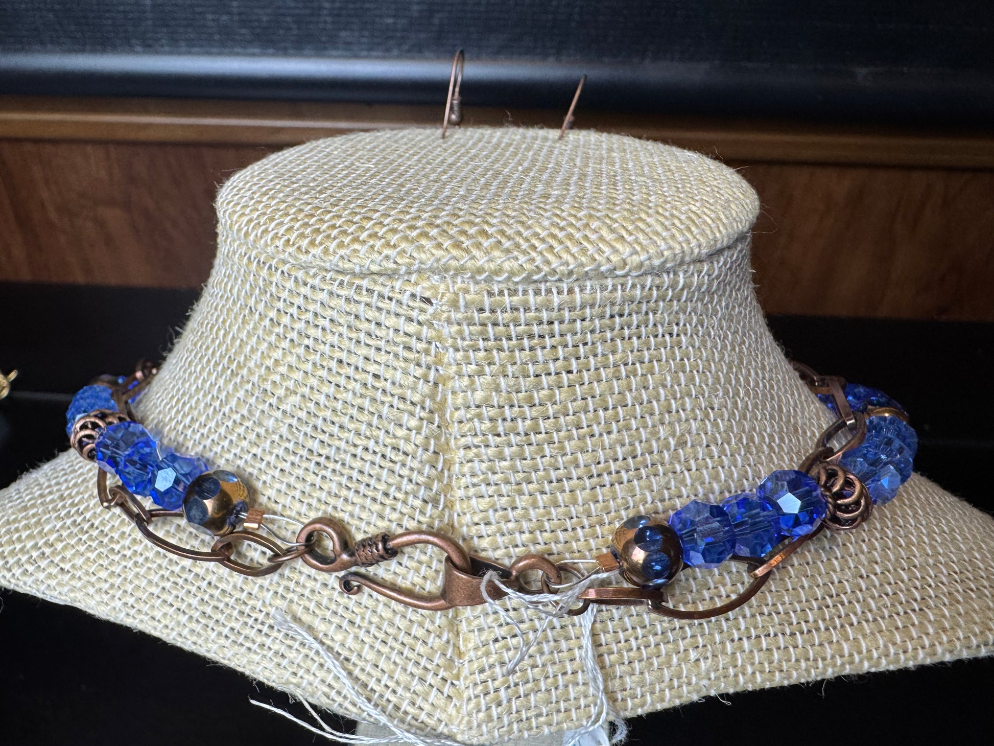 Rustic Blue Glass & Copper Double-Strand Necklace Set