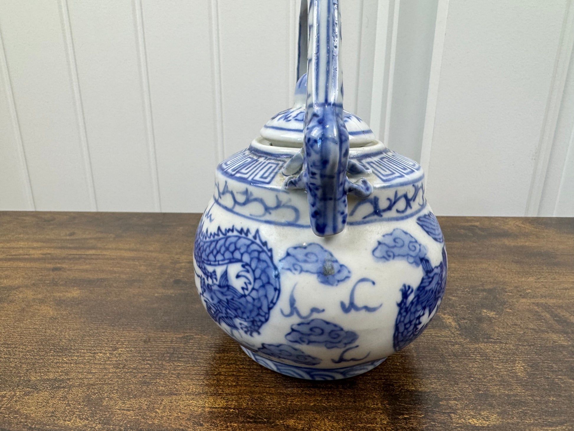 Vintage Chinese Cobalt Blue & White Porcelain Dragon Teapot – Hand-Painted Art