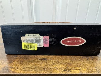 At 10.5 inches in diameter, this sculpture stands approximately 13 inches tall and makes a powerful statement on any tabletop, console, or bookshelf. Imported by the Signature Home Collection, it retains original labels and speaks to Thailand’s heritage of fine wood craftsmanship.