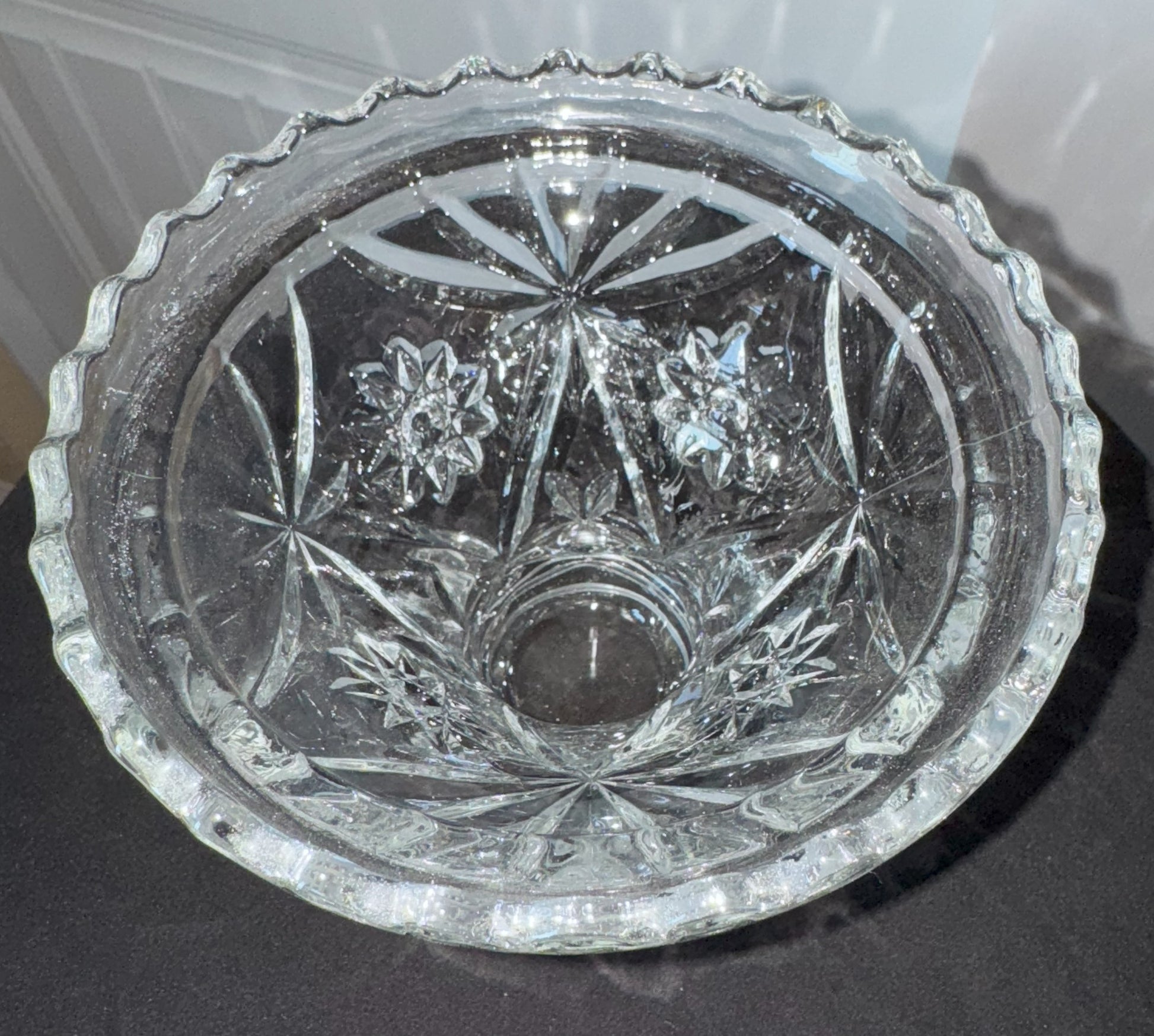 Add a touch of timeless elegance to your collection with this classic Anchor Hocking Early American Prescut (EAPC) glass bowl, featuring the iconic Star of David pattern. Produced between the 1950s and 1960s, this dazzling pressed glass piece is perfect for vintage décor, entertaining, or as a nostalgic gift. Use it as a fruit bowl, centerpiece, or candy dish — it sparkles in any setting!