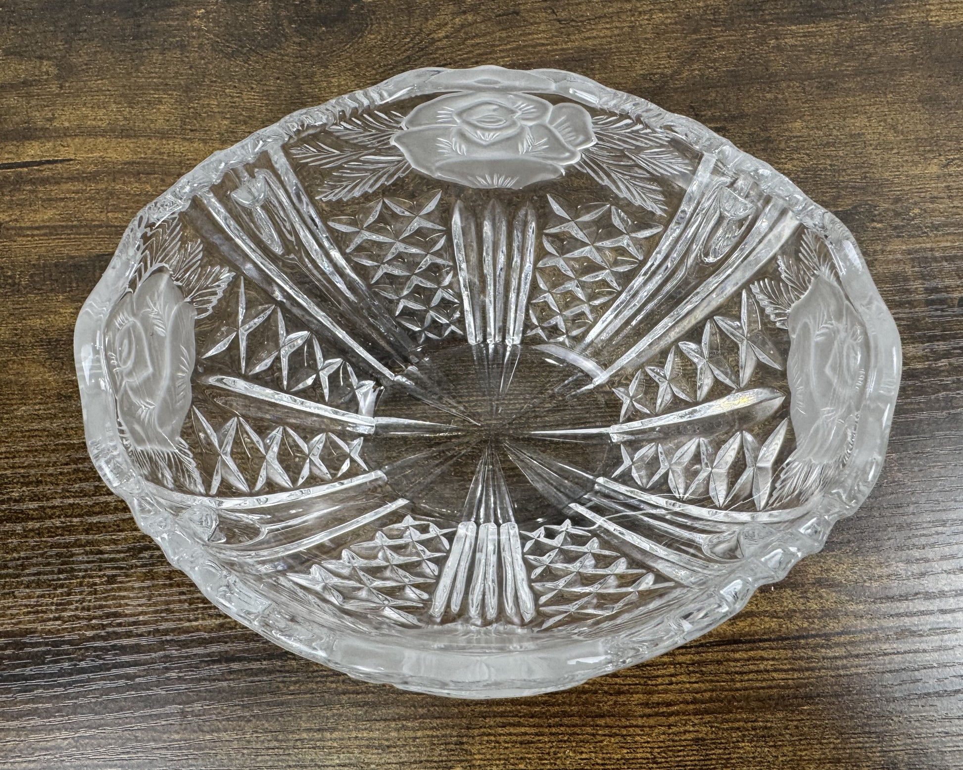 Vintage Anna Hütte Germany Crystal Bowl – 24% Lead Crystal with Frosted Rose Design